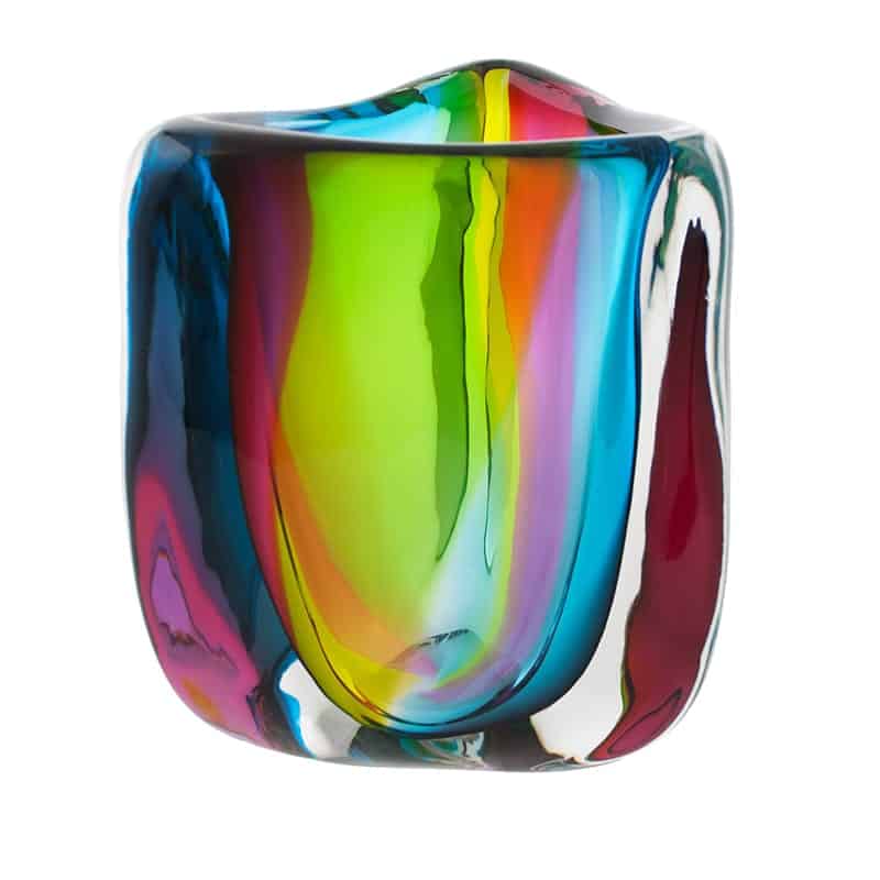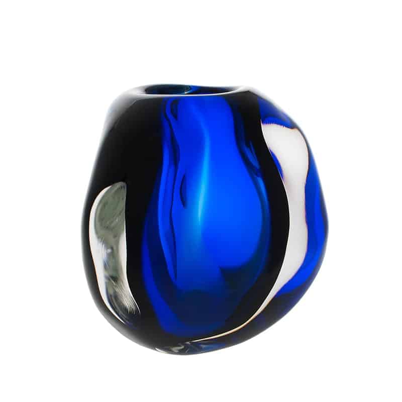 Hand blown and shaped in lead free crystal. No molds are used, and each glass shape is unique.
