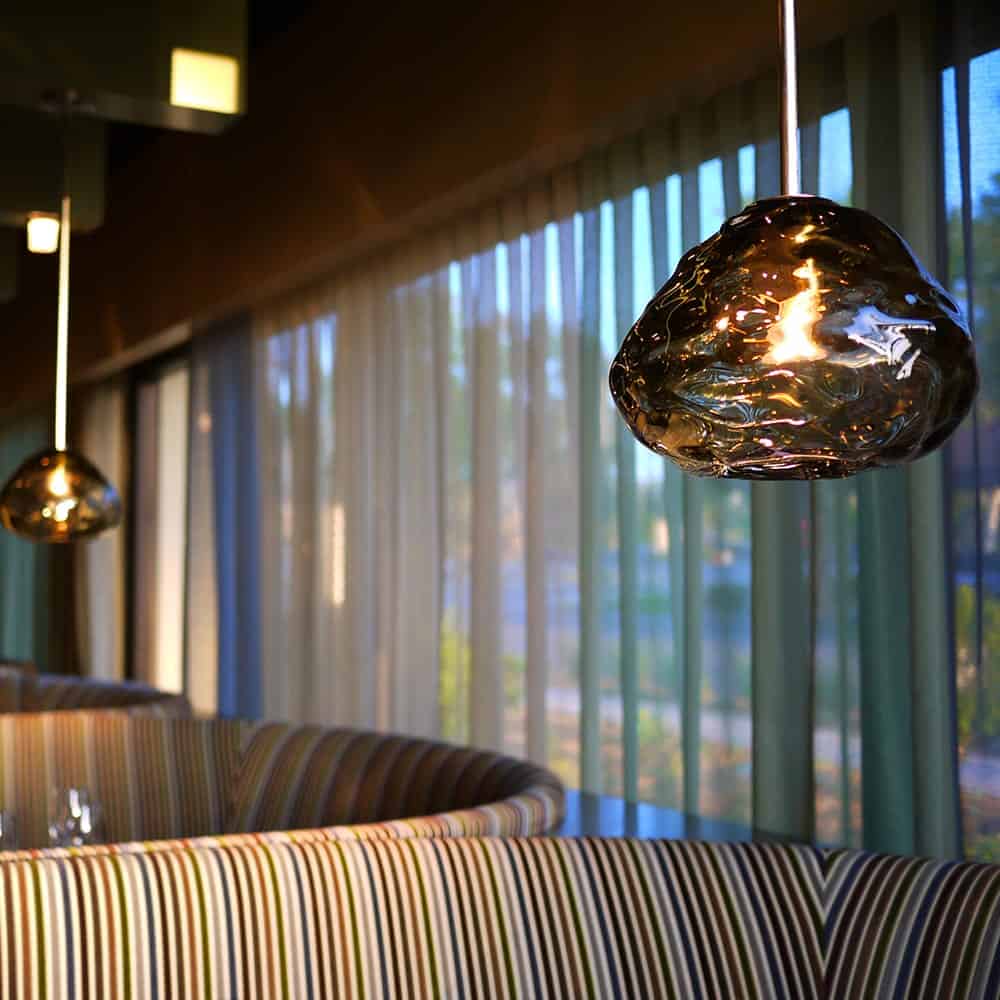 Hand blown and shaped in lead free crystal. No molds are used, and each glass shape is unique.